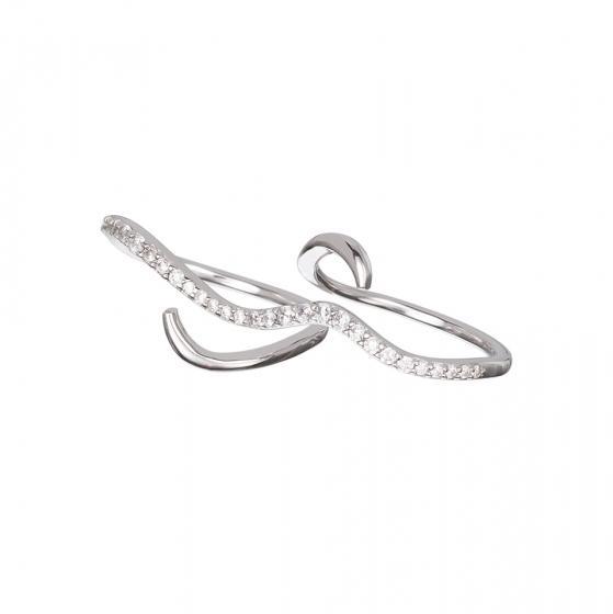 Безупречное нестандартное кольцо стильно дополняет набор из родированного серебра Delicate Perfection. Его нетрадиционный дизайн, украшающий сразу два пальца, придает тому, кто его носит чувство исключительности с привкусом востока.