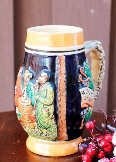 Изумительная сюжетная рельефная кружка с ручной росписью! Круговая рельефная роспись — богатая и красочная! Ручка также имеет рельеф и роспись в виде дубовых листьев.