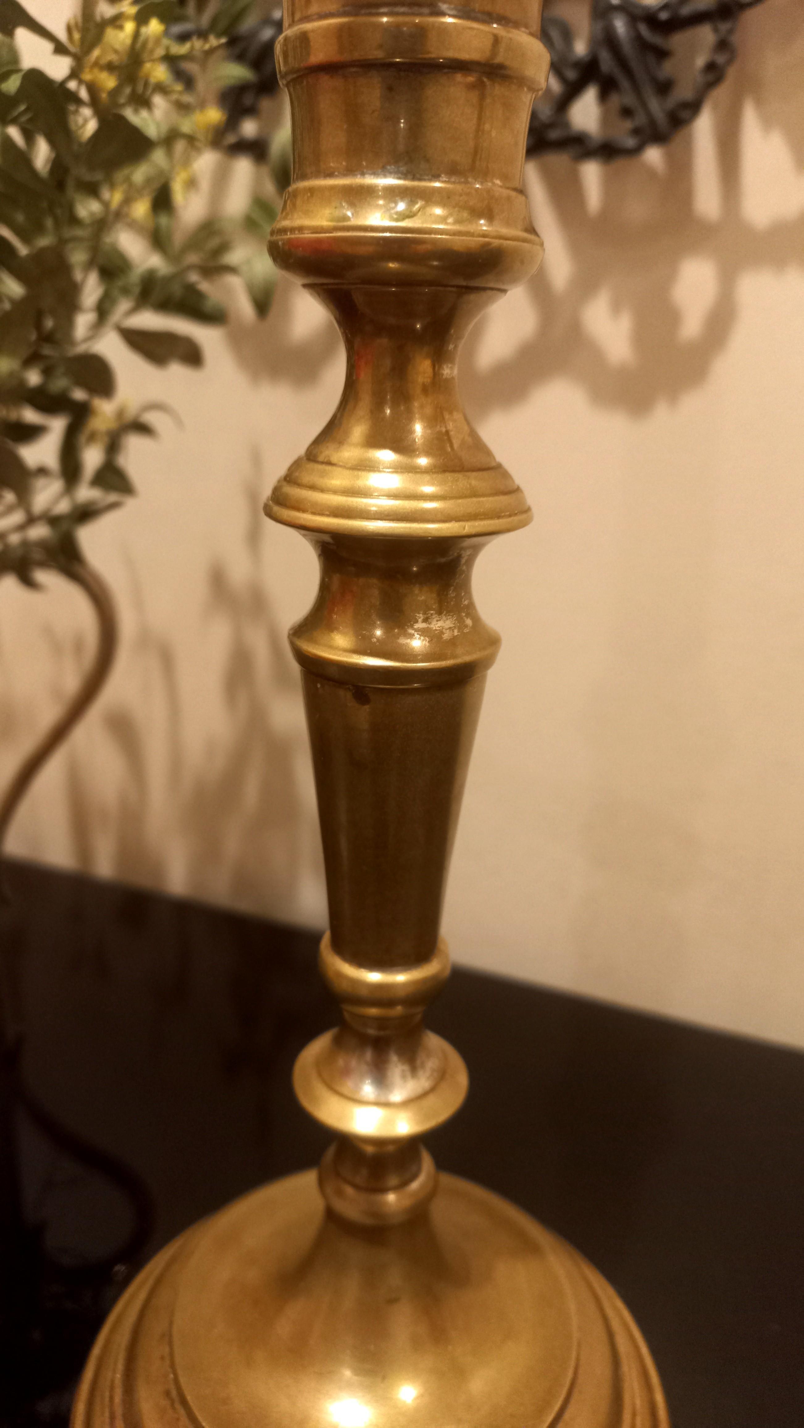 Когда-то этот бронзовый подсвечник был покрыт серебром и украшал гостинные состоятельных людей… Серебро можно увидеть лишь на обратной стороне основания, при этом сам подсвечник приобрёл матово- золотистый цвет вперемежку с патиной.